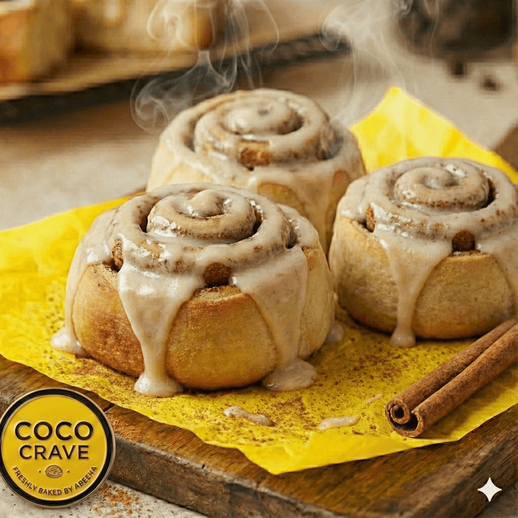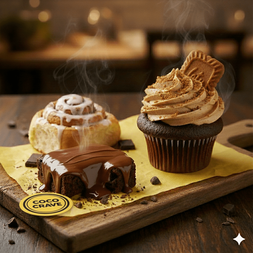 At CocoCrave.pk, we don't do 'dry.' We specialize in textures that melt in your mouth. Whether it’s the crackly top of our Royal Brownies or the cream cheese glaze on our Cinnamon Rolls, every bite is handmade with premium ingredients and zero preservatives